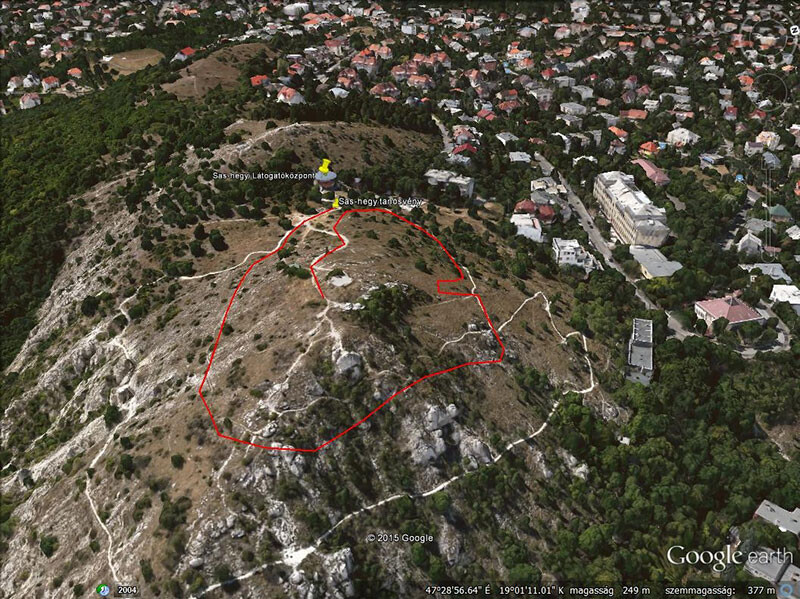 A unique feature of Sas Hill is that temperature variation on the two slopes of the hill has created two different microclimates. While the bare southern slope is characterised by a sub-Mediterranean climate, the bushy northern side is that of a highland climate. This means a temperature difference of 5 °C at least, however, sometimes the difference can even be 15-20 °C. Furthermore, Sas Hill can be divided into two considerably different parts based on natural and seminatural habitats. Areas with dolomite bedrock at higher elevations are covered mostly by rocky grasslands (Rupicolous pannonic grasslands (Stipo-Festucetalia pallentis), Sub-Pannonic steppe grasslands). Southern foothills with the bedrock of marl clay and loess are inhabited by shrubs (Crataegus monogyna, Prunus spinosa etc.) and trees (Fraxinus ornus, Quercus pubescens etc.).